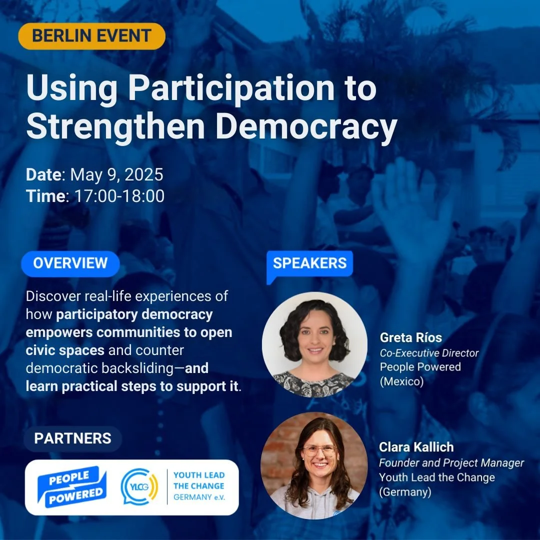 We're excited to partner with Youth Lead the Change Germany e.V. for a special conversation on how participatory democracy can counter rising anti-democratic forces – and why youth leadership is central to this effort.
