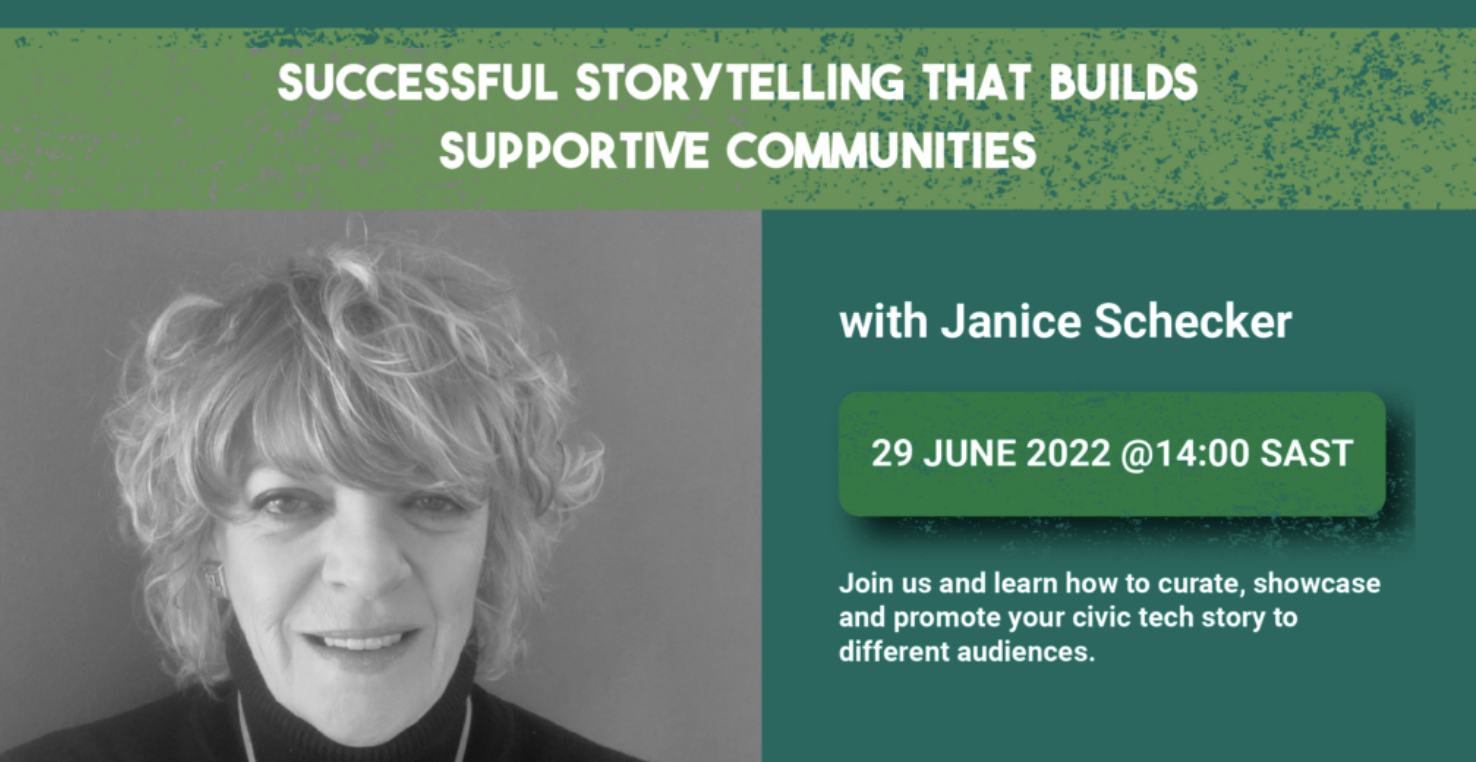 This masterclass organized by the Civic Tech Innovation Network will be facilitated by Janice Scheckter, a digital community advocate and entrepreneur. It is intended to equip participants with strategies and tips they can employ when showcasing, promoting and/or telling their stories to different audiences. Participants also will explore how storytelling can be a collaborative process in which all the actors play their roles.