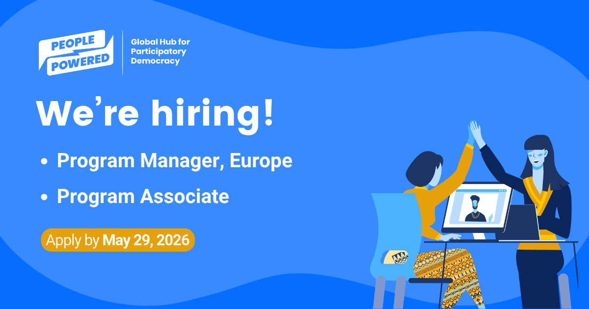 We're looking for two new teammates to help strengthen participatory democracy in Europe and around the world.